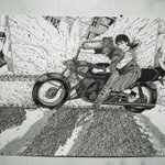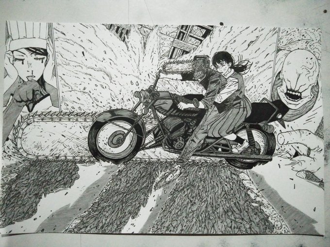 Chainsaw Bike! Inspired by Shotaro Kaneda's motorcycle scene in Akira #chainsawman #chainsawmanart #traditionalart #fanart