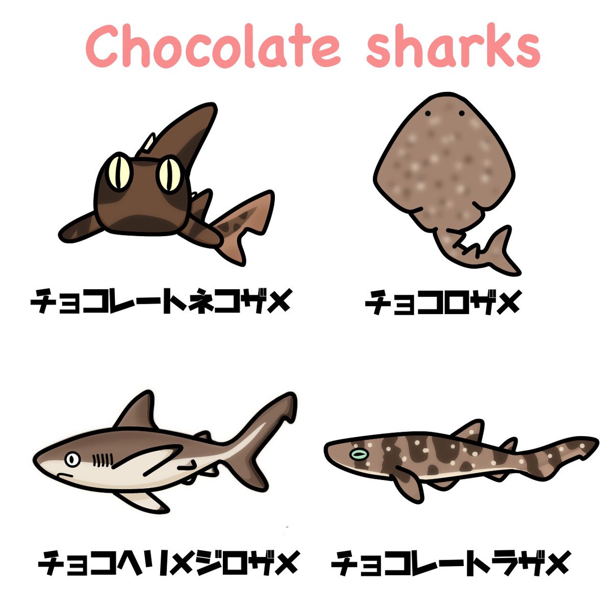 チョコレートザメーズ。 もうすぐバレンタイン✨架空のチョコレートなサメを描いてみました🦈🦈 #サメ #イラスト #shark #illustraion #チョコレート #chocolate #絵描きさんと繋がりたい