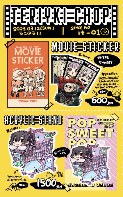 明日のシンステのお品書きです‼️ 新刊は本+ポストカードのセットになります🌻 ポストカード単品での販売もあります。 11月歌姫で発行したP虐ギャグ合同も持っていきます🫰 み-31にてお待ちしてます~ ↓新刊サンプル twitter.com/suzushi1122/st… #cin_stage