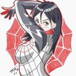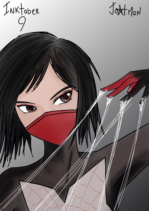 Day 9/31 - #cindymoon AKA #silk. I actually borrowed the pose from @unclerabbitii s design of Morrigan. So check out their work! #arttrober2021 #inktober #anime #manga #animeart #mangaart #watercolour #copic #digitalart #procreate #marvel #spiderman #spiderverse #red #animegirl