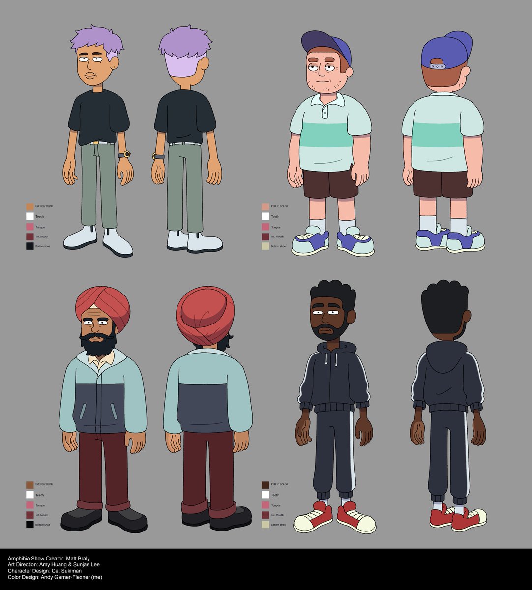 @CatSukiman being amazing at the character design! Funny enough the pizza guy had a lot of color versions before being approved. #colordesign #amphibia