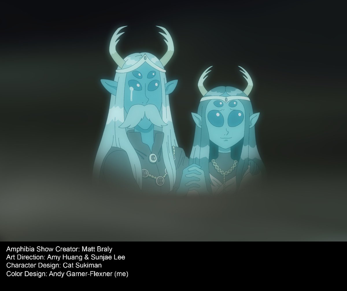 Finally ready to post some of my #Amphibia Series Finale #ColorDesign! Shortly after I finished this episode, I started to do AD work on Owl House. The girls went through a few versions, but we settled on these ultimately. A lot of help from @AmyQHuang to get these just right!
