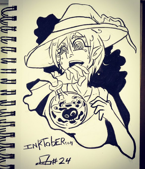 Otro más/ANOTHER ONE #inktoberday24 #dizzy #potion #witch #inktober #inktober2019 #dark #scared #confused #ink #realwitchtober #witchtober #blackandwhite