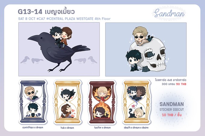 โปสการ์ด + สติ๊กเกอร์ลงขายงาน #CA7 #ComicAvenue7 ฝากต้าวจิ๋วเหล่านี้ด้วยนะคะ ⌛️ #TheSandman #Morpheus #dreamling #Corintheus