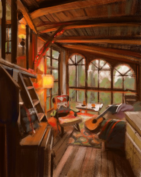 we're supposed to have winter, but until it does I'll just paint it. think of it as my own wishing rain dance :) . . . #art #winter #cosy #cosyaesthetic #wintercabin #digitalpaint #enviromentstudy #artstudy