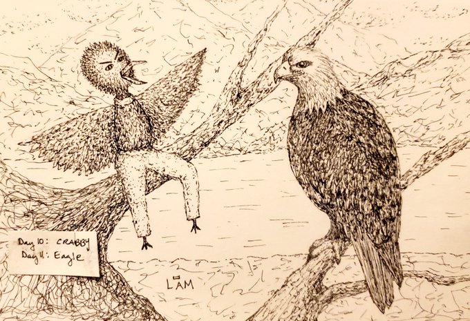The Eagle is tired of listening to the Crabby Ravtaur. #inktober #inktober2022day10 #inktober2022day11 #inktober2022 #crabby #eagle #sketchbook #drawing #Drawtober2022