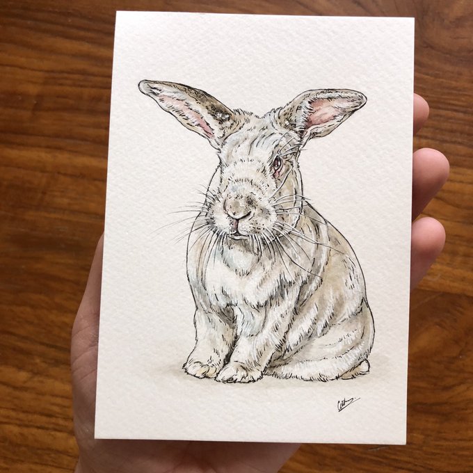 A memorial piece of a gorgeous white rabbit named Walt!🐇 This little painting went all the way to the USA and now sits on their owners desk 🥺💗 #elevenseshour #CraftBizParty #ArtistOnTwitter #petportraits