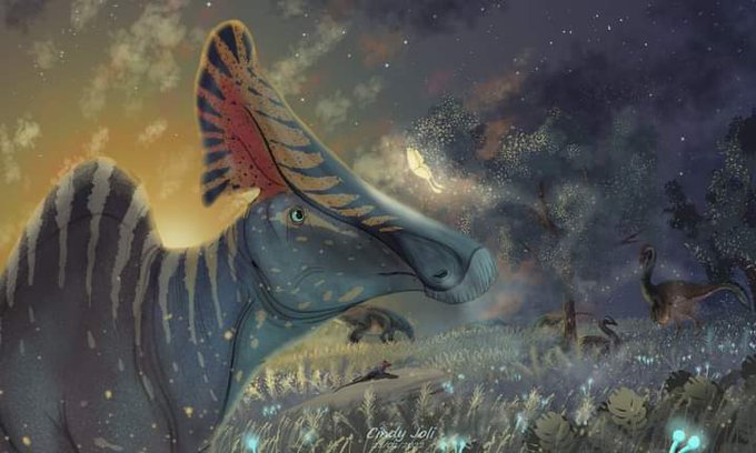 Evening Glows in an Ancient Time #digitalart #cretaceousperiod #cretaceous #olorotitan #kerberosaurus #gallimimus #ancientperiod #prehistoricart #fantasyart #dinosaur #paleoart