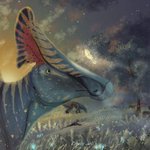 "Veteran huntress", wandering in the dead of night, an old Maip macrothorax roams its territory in search of a potential meal #paleoart #sciart #maip #megaraptor #megaraptoran #dinosaur #dinosaurs #theropod #Cretaceous