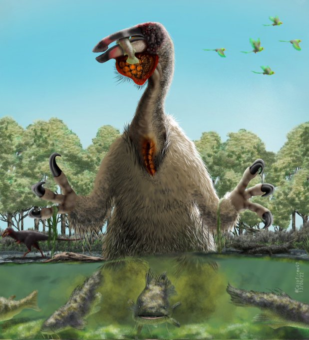 "Spock", an Anzu wyliei jumps after being scared #paleoart #sciart #dinosaur #oviraptor #anzu #cretaceous #paleostream