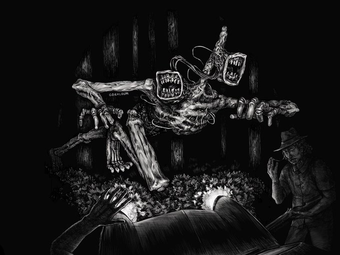 Lurking in the twilight... Creature design by Trevor Henderson 🖤 #cryptid #creepypasta #sirenhead #horrorart