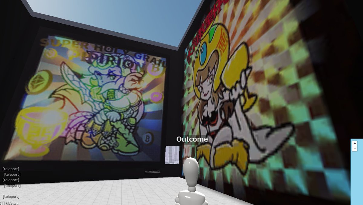 これがぴっぴ教団のNFTアートによる世界計画のはじまりでぴよ #NFTart #cryptovoxel #Rarible #自作シール cryptovoxels.com/play?coords=S@… twitter.com/Pippi_NFTart/s…