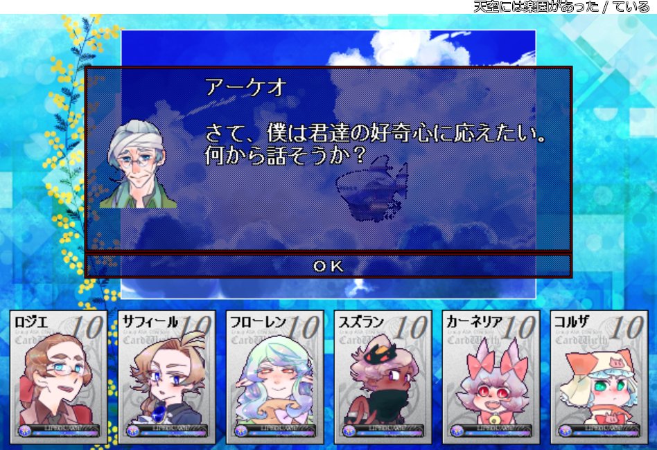 カードワースシナリオ 「天空には楽園があった」公開します。プレイ時間1:30~、ほぼ探索。 依頼人と一緒に空飛ぶ古代船の調査に向かうシナリオです。 パーティは6人固定、対象レベルはLv.5~7ですが戦闘無しです。 週末のお供にどうぞ。 ux.getuploader.com/teruiCW/ #cwUpS