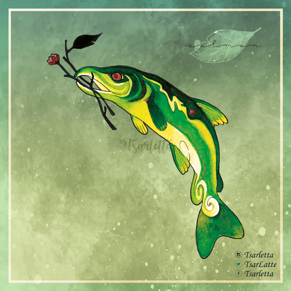 16th totem : the Salmon 🐟🌿 #art #watercolour #animalart #daphne #nature #greenart 🌿 Daphne : twitter.com/TsarLatte/stat…