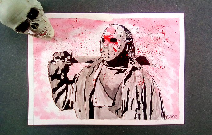 Some ink and blood on paper for today. #halloween #diadasbruxas #jason #fridaythe13th #desenho #nanquim #darksidebooks #macabratv #art #illustration #draw #dibujo #inkdraw #inkart #horror #horrorart #horrorillustration #inktober #inktober2020 #patovargas #patovargasart
