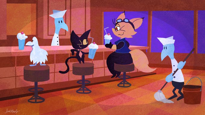 The Ice Cream Parlor #digitalart #illustration #ArtistOnTwitter #cat #bird #diner #parlor #icecream