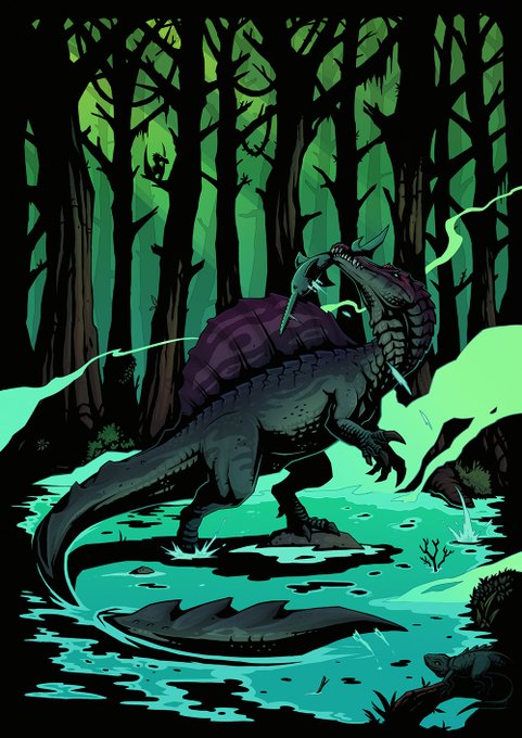 Another Comm I enjoyed doing very much! Spinosaurus is always great to work on, and mixing accurate and fantasy features was nice :) DM if you want a dino comm too! ;D #FossilFriday #dinosaurs #spinosaurus #illustration #dino #dinosaurios #ArtistOnTwitter #paleoart #comic