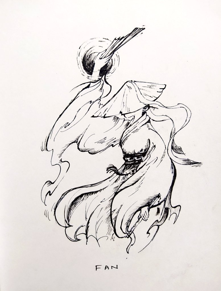 Fan. My love for floaty things knows no bounds. Especially fabric. #inktober2021 #inktober #art #modernart #woman #comic #manga #mangaart #donghua #daoism #cultivation #Spirituality #doodle #inkart #sketch #ArtistOnTwitter #conceptart #fineart #contemporaryart #surrealism