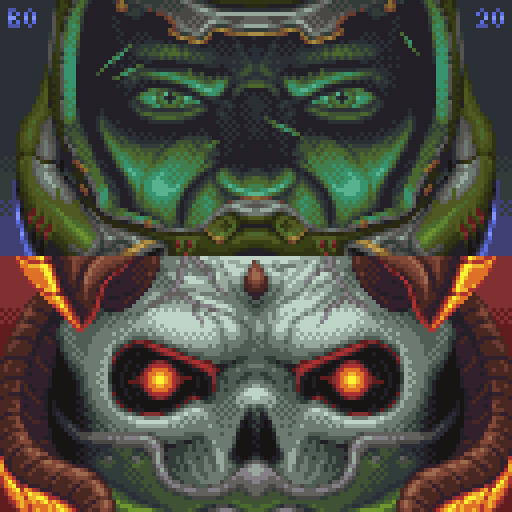 Not posted any #Doom #pixelart in a while but here is a new piece I've poked at on and off for a while. 320x200 pixels, which is the original games resolution. 64 colors ripped straight from #ClassicDoom's palette. #doomguy #doomslayer #cacodemon #doometernal