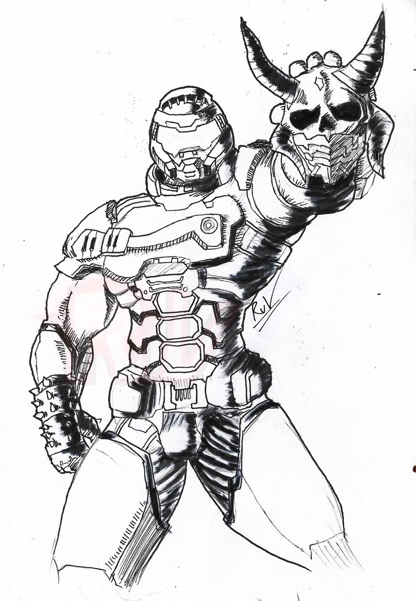 Hel[M]asktober day 6 - Doom slayer from DOOM "man i think my drawing skill was decreased... :'( " #inktober2020 #helmasktober #doomguy #doomslayer #DOOM #Doometernal #fanart #artwork #inking #painting #photoshop