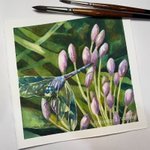 A little 8x8”watercolor painting for some #MondayMotivation This is the 2nd in a series of Blue Dasher paintings. I’ve only encountered these gorgeous blue creatures in my garden once and I’m so glad I did! 💙 #Watercolor #dragonfly #artistsontwitter