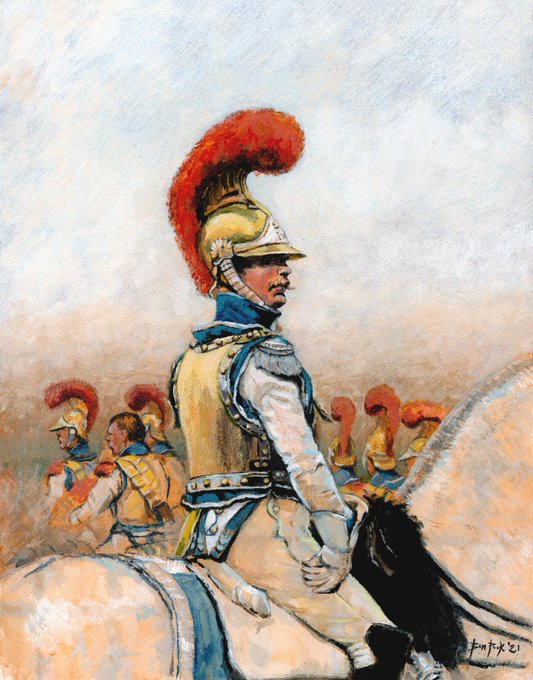 New scan. A study of mine. ‘Carabinier à cheval’, based on a detail from an Édouard Detaille painting. #ArtOfTheDay #painting #artist #traditionalart #ArtistOnTwitter #drawingoftheday