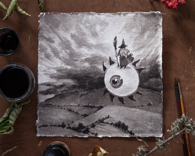 Take care of your familiar witches,so it can offer a ride in the time of need! 🧙♀️👁️ #drawtoberfiendishfamiliar @drawtober #Drawtober2022 #inktober2022
