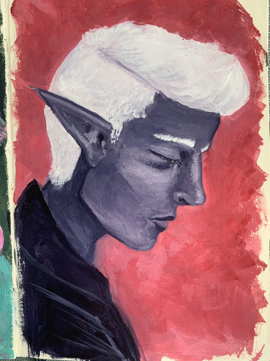 Due to happenings in last Thursdays @CriticalRole liveshow I felt the need to paint Essek Thelyss. Sad pointy hot drow boi. #criticalrole #criticalrolefanart #Essek #essekthelyss #dndfanart #dungeonsanddragons #drowelf #art #sketchbook #artisaverb #gouache #traditionalart