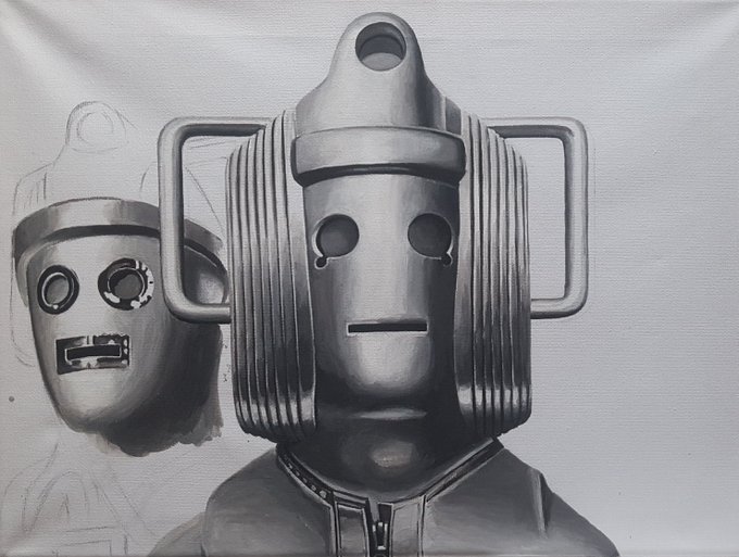 Just the background left to paint, I absolutely L😍VE 1960's Cybermen! #WorkInProgress #DoctorWho #DrWho #Cybermen #canvas #illustration #art