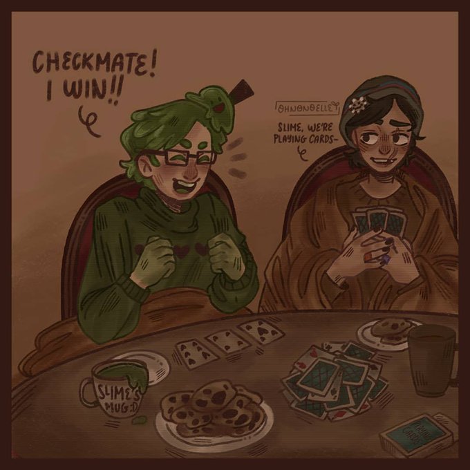 Hi!! I made dapduo fanart (quackity and slimecicle) :DD Day 4: "Cozy / Gamble" Rts vv appreciated!! <33 Full post: instagram.com/p/CVfvS5OvAq3/… #quackityfanart #slimeciclefanart #dapduo #dapduofanart #mcytober #mcytfanart #dsmpfanart #DsmpTober #quacktwt