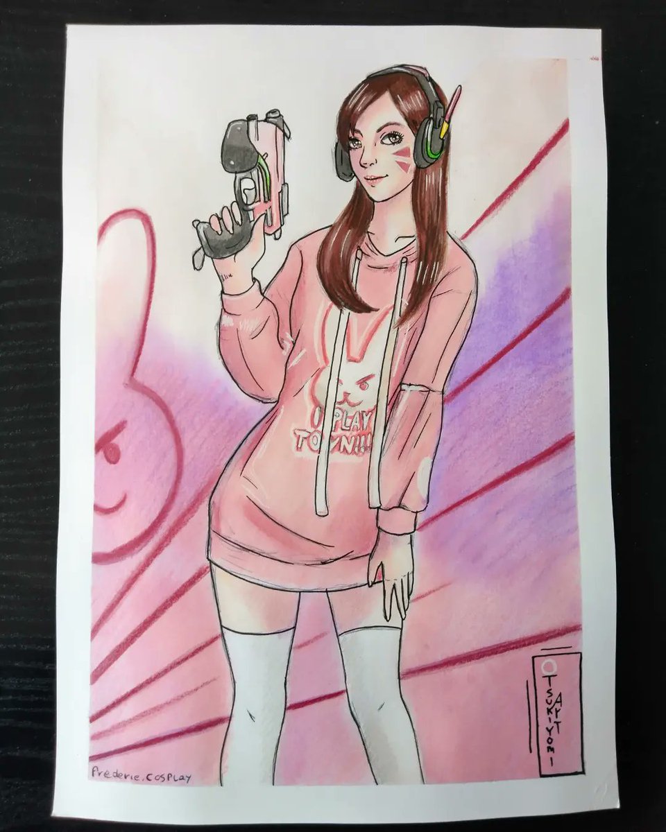 A fanart of @DjaneFrederie cosplaying D-va (Overwatch) #traditionalart #artoftheday #fanart #watercolor #dva #dvaoverwatch #colorpencil #cosplay #traditionalart #dvacosplay #overwatch #art #artlovers #artwork #drawing #drawingpencil #graphicdrawing #graphicart #woman
