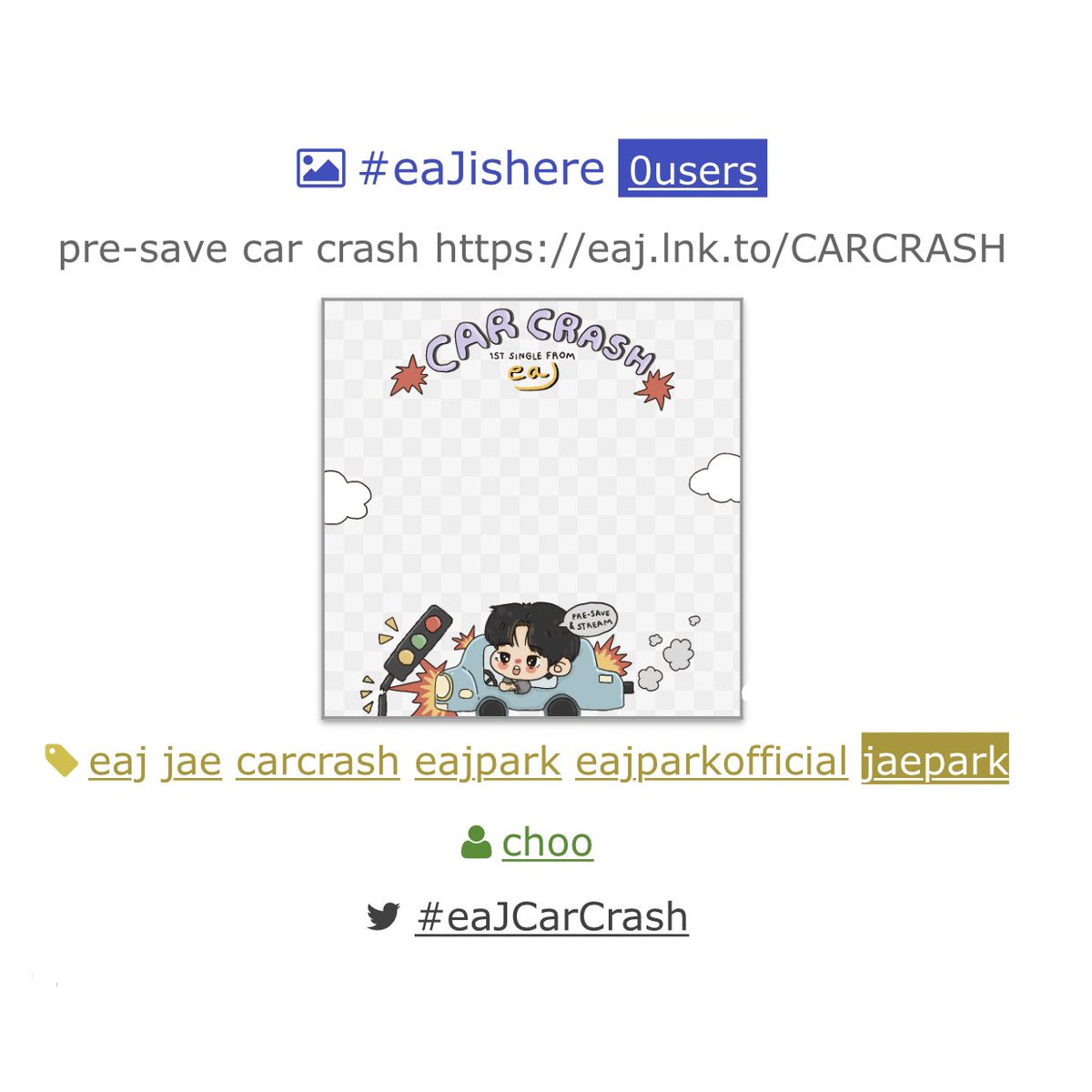 🧑🏻🚀🚙💨 our highly anticipated eaJ 1st single - “Car Crash” pre-save is out now!!✨ Lezgeddit 🔗 eaj.lnk.to/CARCRASH #PreSaveCarCrash #Jae #eaJ #제이 #eaJCarCrash