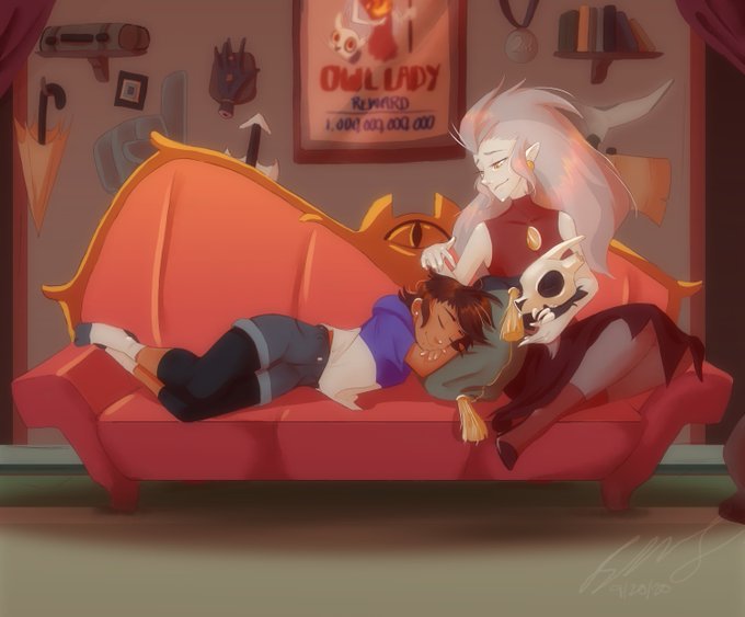 This took me literally all day but it's worth it for these cuties! #owlhouse #eda #raine #raeda #huntlow #fanart #owlhousefanart #hooty #owlhousefanart #watchinganddreaming #tohfanart #huntlow #theowlhouse