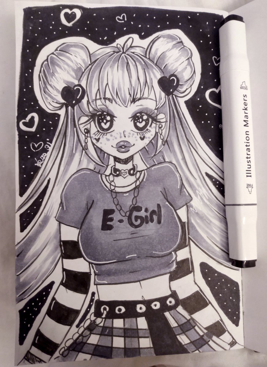 🖤 Cute Girltober Day 24: E-Girl 🖤 . #cutegirltober #cutegirltober21 #inktober2021 #egirlaesthetic #egirl #animeart #copic #traditionalart