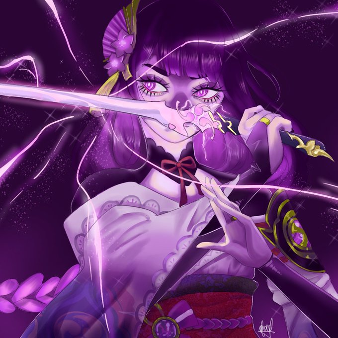 Drew the two electro ladies! 💜⚡️ #原神 #yaemiko #RaidenShogun #RaidenEi #genshinimpactart #genshinimpactfanart #genshinimpact #electro