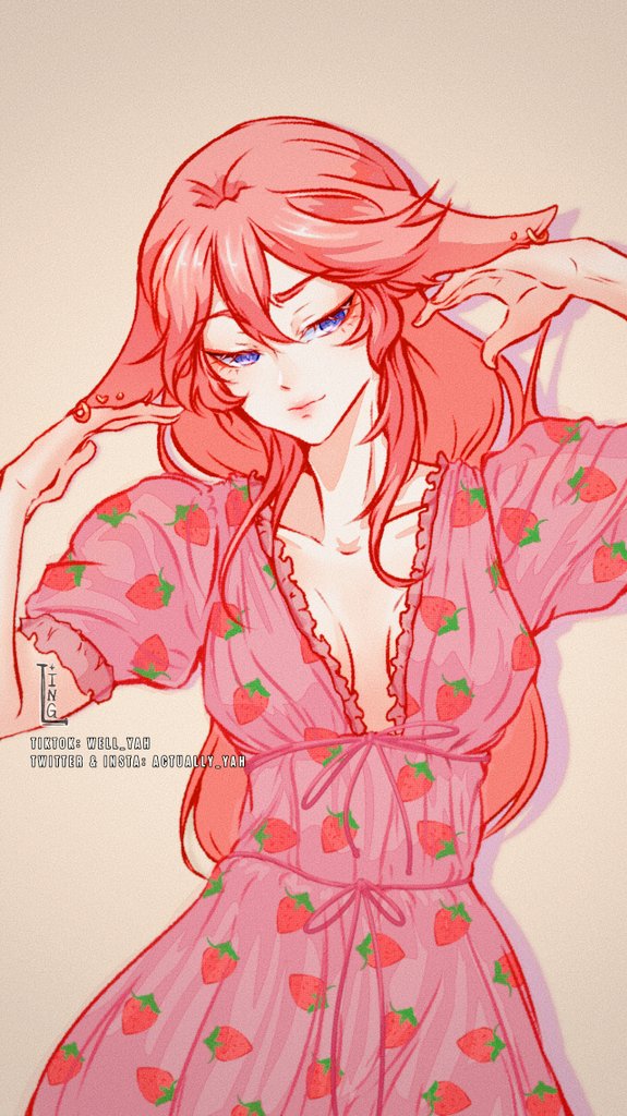 May or may not do Diluc version 👀 #yaemiko #Genshinfanart #genshinimpact #digitalart #fanart #strawberrydress #electro