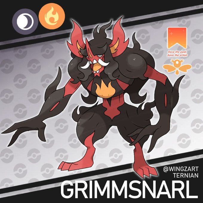 Ternian Grimmsnarl The Burnt-out Pokemon Type: Dark / Fire It is inspired by wildfires caused by humans. #fakemon #pokemon #fanart #artwork #pokemonscarlet #pokemonviolet #pokemongen9 #pokedesign #impidimp #environment #myth #wildfire #ecofriendly #grimmsnarl #morgrem