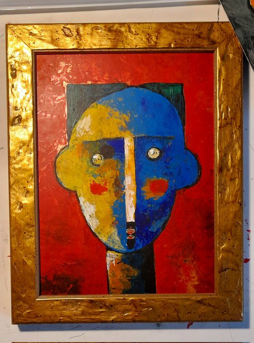 Head framed in a frame. 🟠🔴🔵 #painting #portraits #face #colours #frame #art #artistsontwitter #FridayMotivation