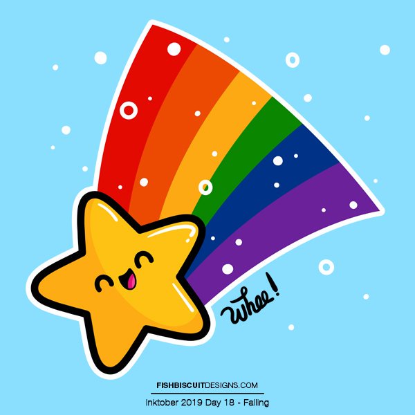 Inktober 2019 Day 18 - Falling #inktober #inktober2019 #chilltober #fallingstar #kawaiiart #rainbow