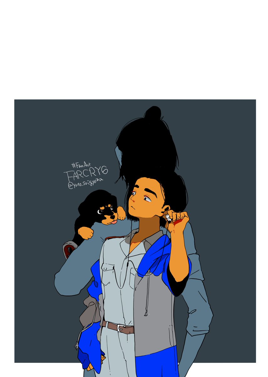 #Inktober2022, Day 8: #Match. Matching bandanas! #inktober #FarCry6 #DaniRojas #Chorizo #Libertad #Ubisoft #UbisoftToronto #dog #bandana #art #fanart #traditionalart