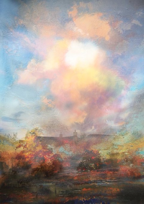 The view from my window last night, A glorious October Sky #art #watercolour #mixedmedia #gouache #leicestershire #contemporaryart #landscapepainting #figurativeart #mixedmediapainting #britishlandscape #artistontwitter #PictureDescription #urbanpainting