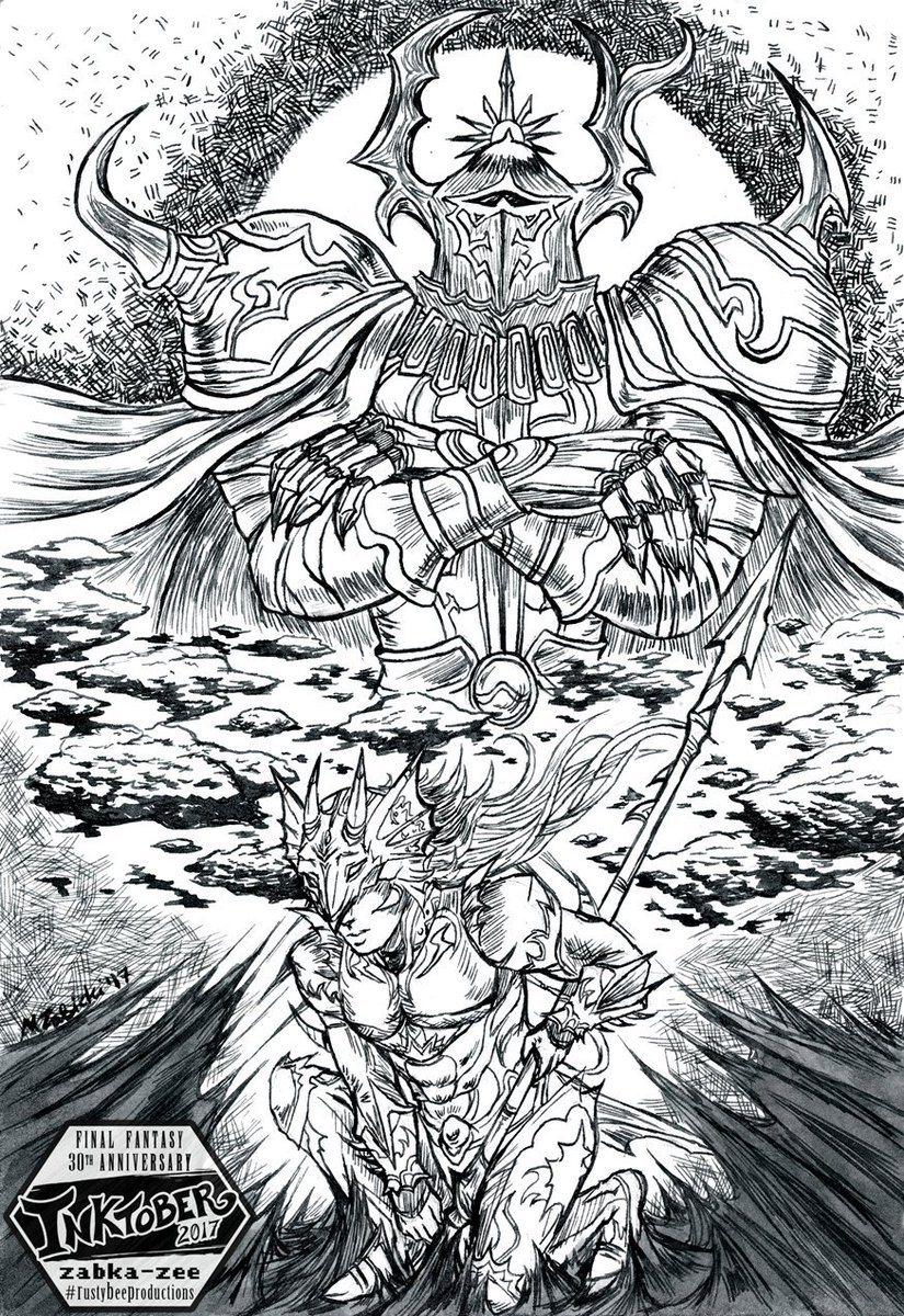 #inktober2017, Day 19 ✒ #golbez & #kainhighwind (#finalfantasyiv) He played Kain like fiddle. 💔 #finalfantasy #inktober #rustybeeproductions