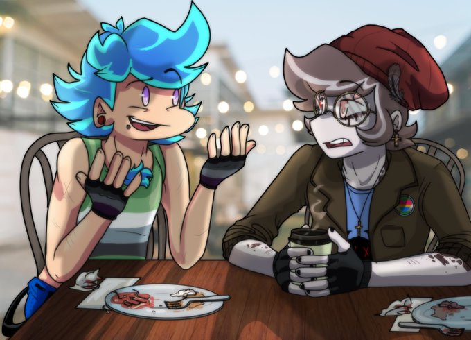 Happy pride yall! enjoy a moment where the guys are chill with one another chatting and not wanting to merk each other. Reformed Killer design/ colored version. ( pin usually not on outfit however) #fnfbigbrother #fnfkiller #fnfarmaros #fnf #Pride2022