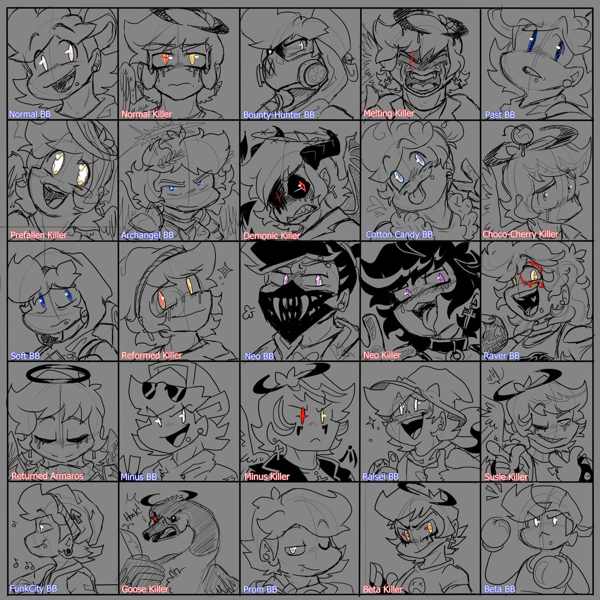 I've Doodled every BB and Killer design that I have done and could think of off the top of my head- #fnfbigbrother #fnfkiller #fnfArmaros