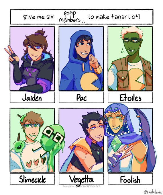 i kinda wanna do another sooo feel free 2 suggest more !! #qsmpfanart #jaidenfanart #tazercraftfanart #etoilesfanart #slimeciclefanart #vegettafanart #foolishfanart