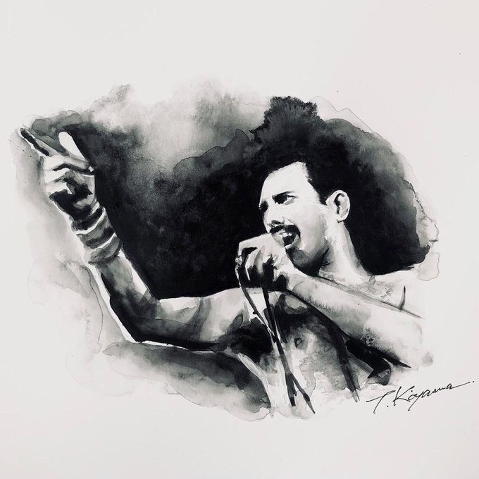 「Freddie Must Go On」🧔♂️ 追悼イラスト展、銀メダル🥈の受賞者はkoyamac.to様の作品です。おめでとうございます㊗️㊗️とても繊細で叙情的、歌声が聞こえてきそうです。 #FreddieMercury #イラスト好きな人と繋がりたい #拡散希望 #みんなで楽しむTwitter展覧会