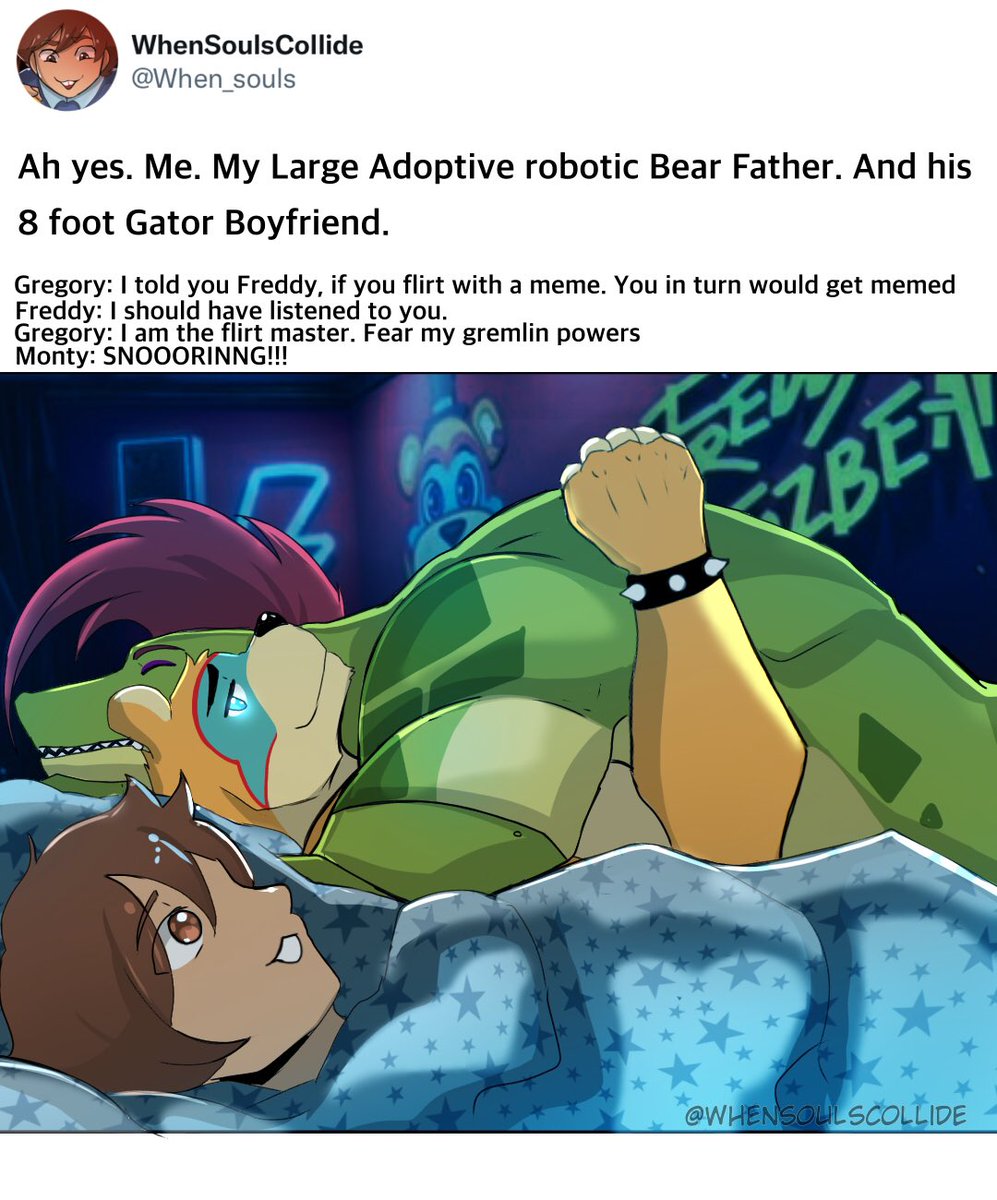 ⚠️WARNING⚠️ A Beary Sus Comic (3/3) . You guys should know me at this point, that I have to include a meme for a comic scene XD . . . #fnafsecuritybreach #FNAF #furry #furryart #fnaffanart #fnafsb #montgomerygator #glamrockfreddy #freddy #montyxfreddy #roxannewolf #fnafmeme