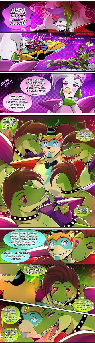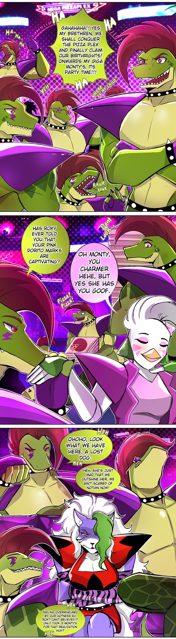 Giga monty comic (3/3) . Sorry for the tags again, had to post it cut, for a better format 😓 . #glamrockchica #roxannewolf #fnaf #fnafsb #fnaffanart #montgomerygator #montygator #montyxfreddy #freddyfazbear #freddy