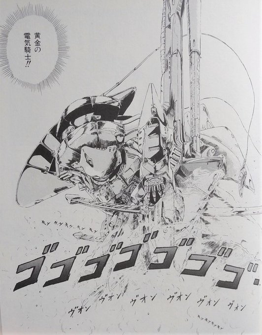 第一巻の終盤。 土煙の中から現れたのは、高々と屹立する二つ折りのバスターランチャー、激しくうねるスタビライザー、響き渡るイレーザーエンジンの音、光り輝く黄金の巨体。 ファイブスター物語ファンなら #このシーン嫌いな人いない説 #ファイブスター物語 #FSS_jp