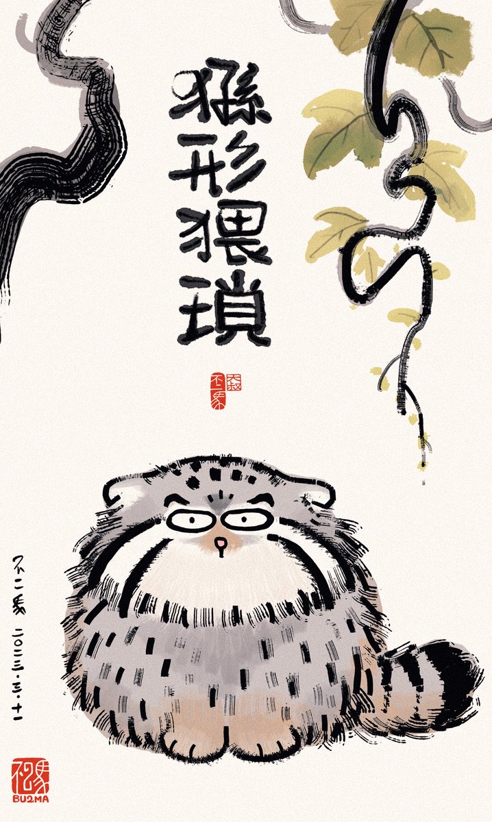 Pallas's Cat always look guilty conscience even if they haven't done anything wrong. パラスの猫は、何も悪いことをしていなくても、常に罪悪感を持っているように見えます。 #兔猻 #pallasscat #マヌルネコ #9gag #meme #catmemes #catart #procreate #littlecats #funny #cute #bu2ma